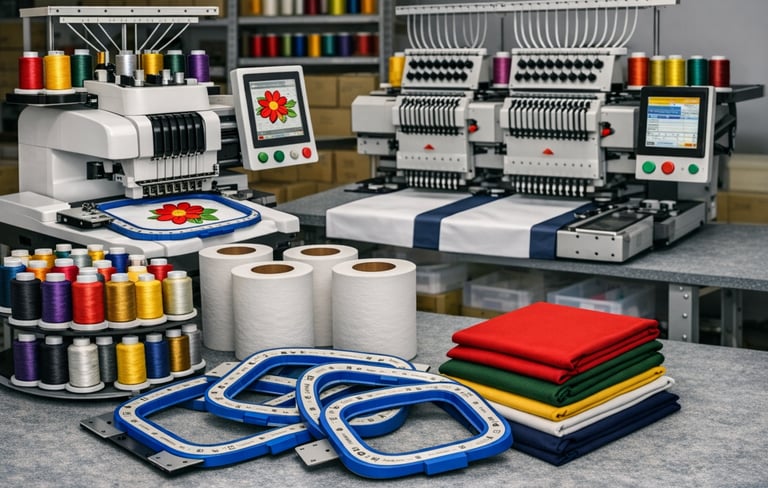 Accessori e materiale di consumo per ricamo a macchina... telai magnetici, aghi, fliseline, idrosolubili